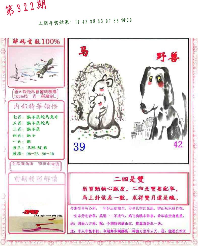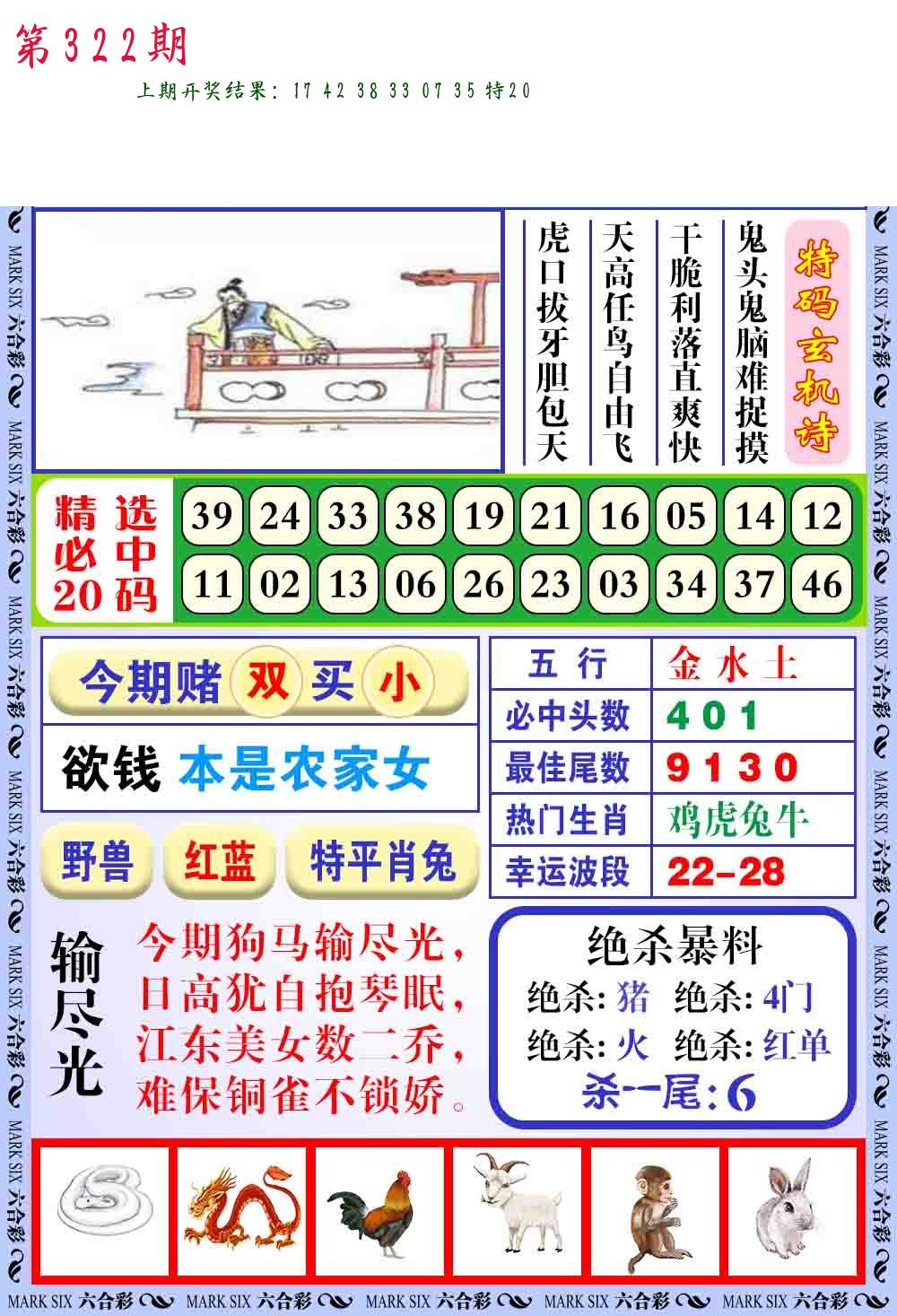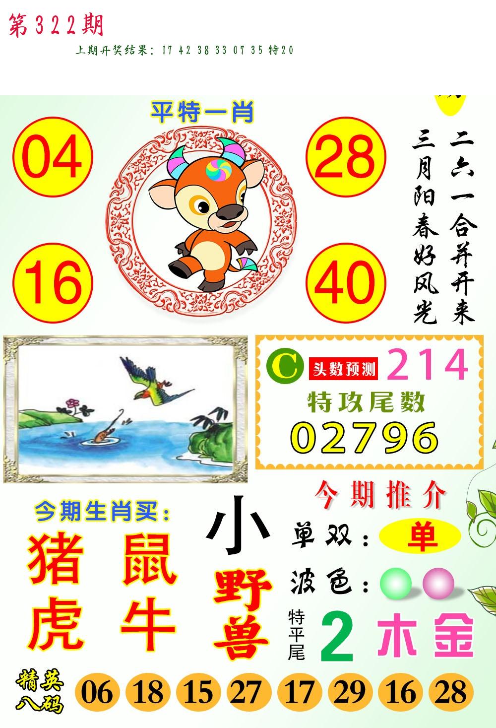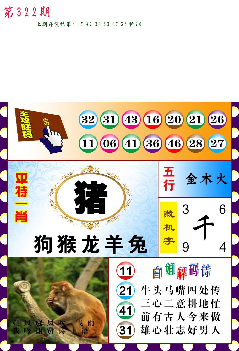 | 322期推荐五肖: 虎马狗鼠兔 ~~稳准狠 |