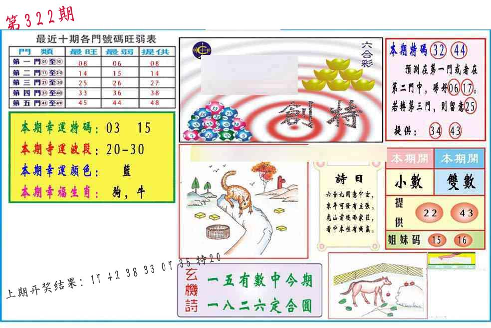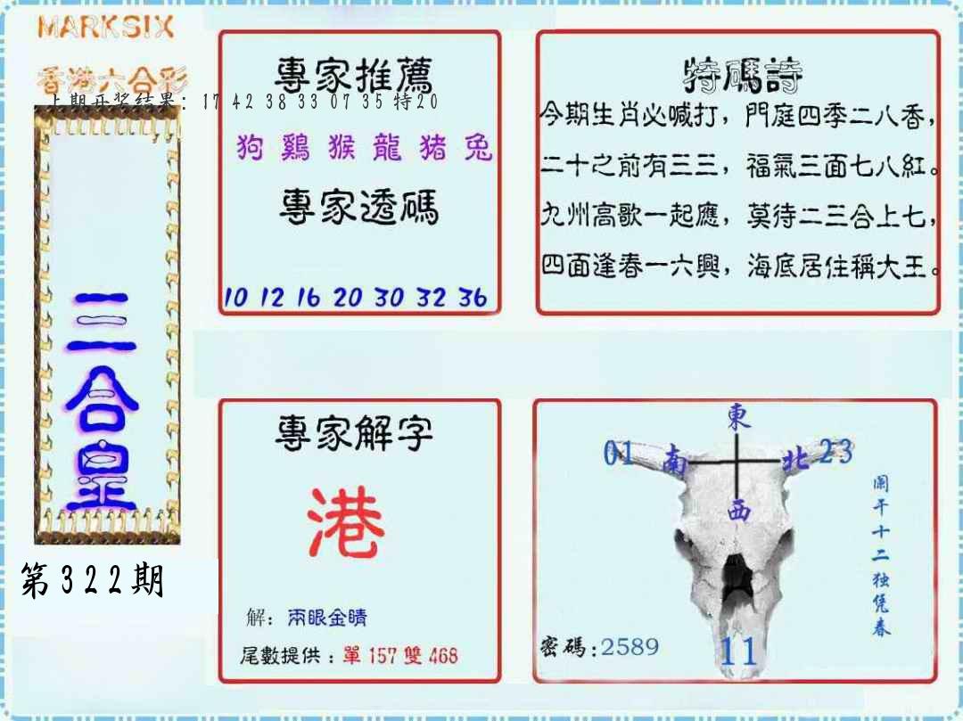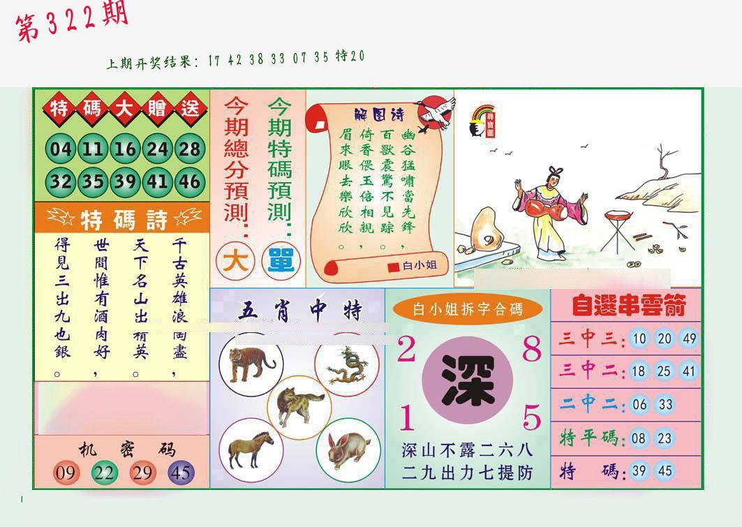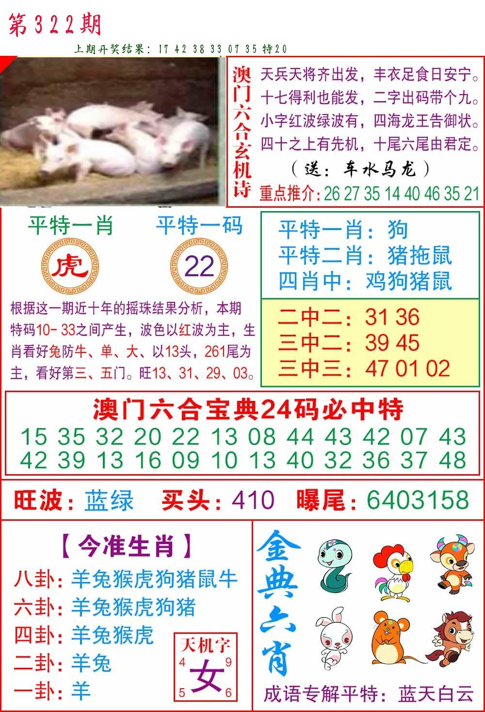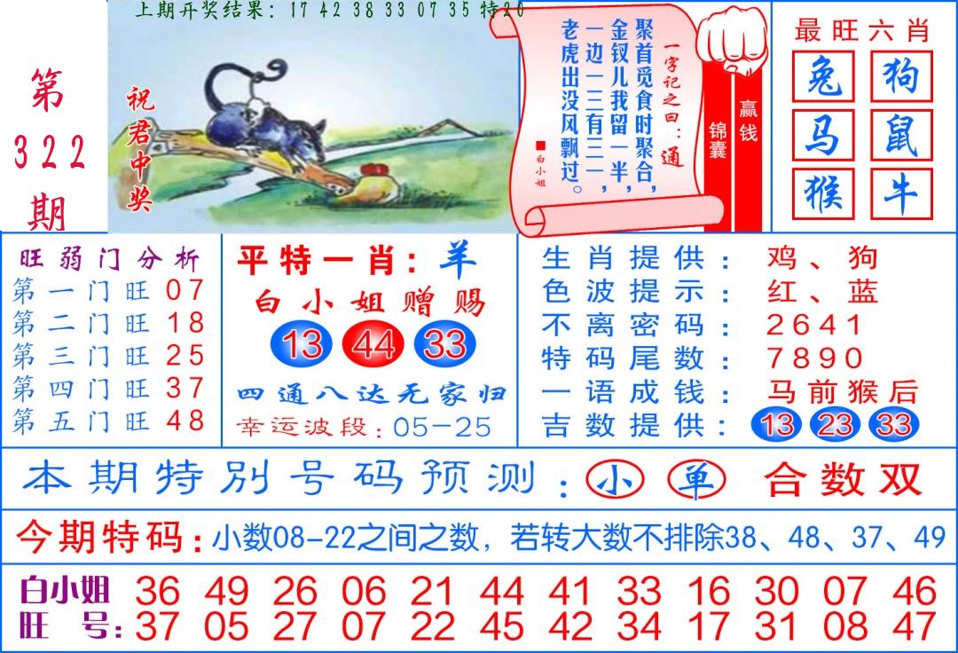 | 322期推荐五肖: 虎马狗鼠兔 ~~稳准狠 |