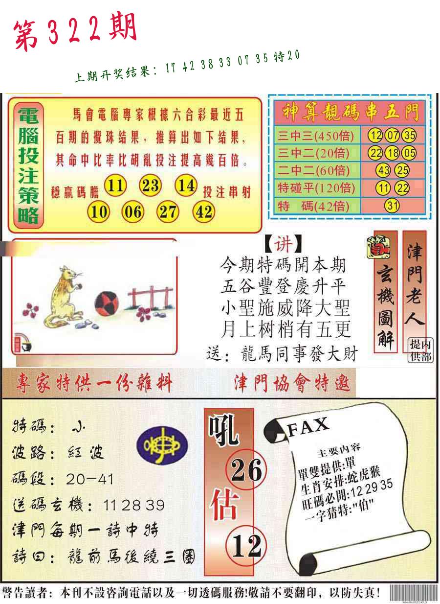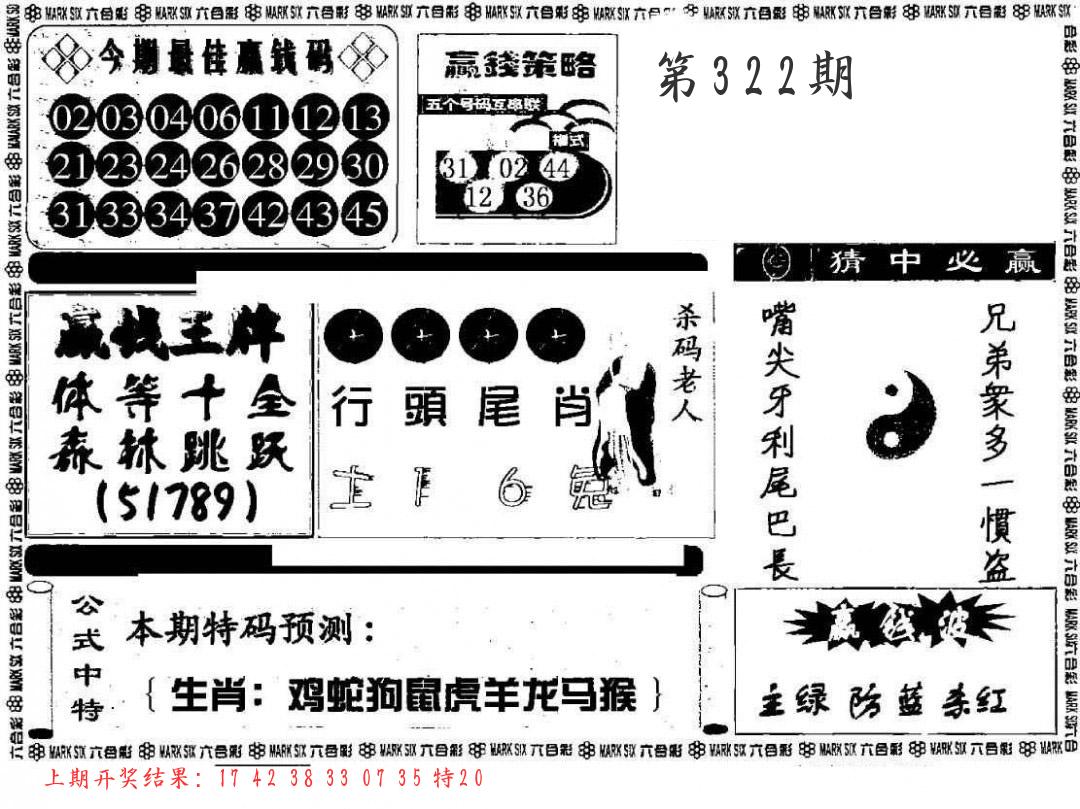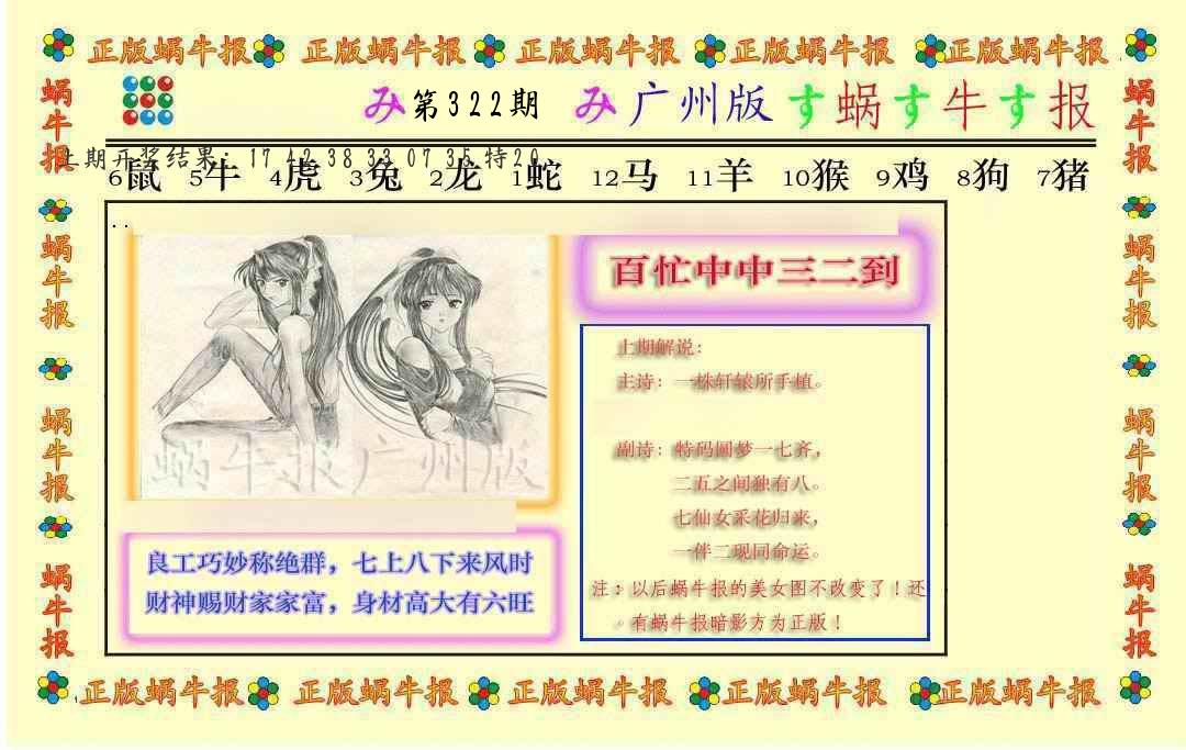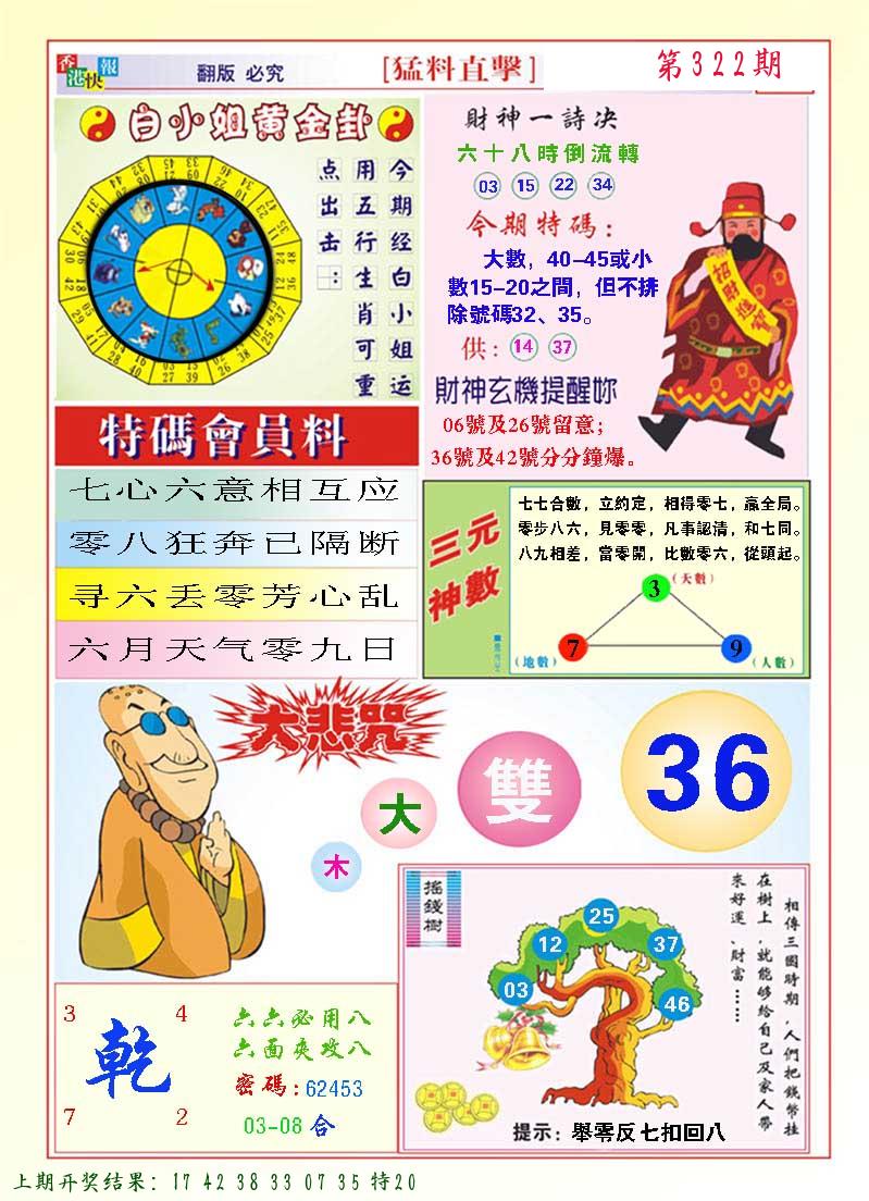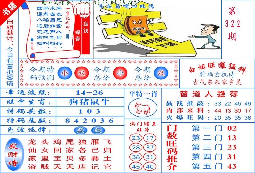 | 322期推荐五肖: 虎马狗鼠兔 ~~稳准狠 |