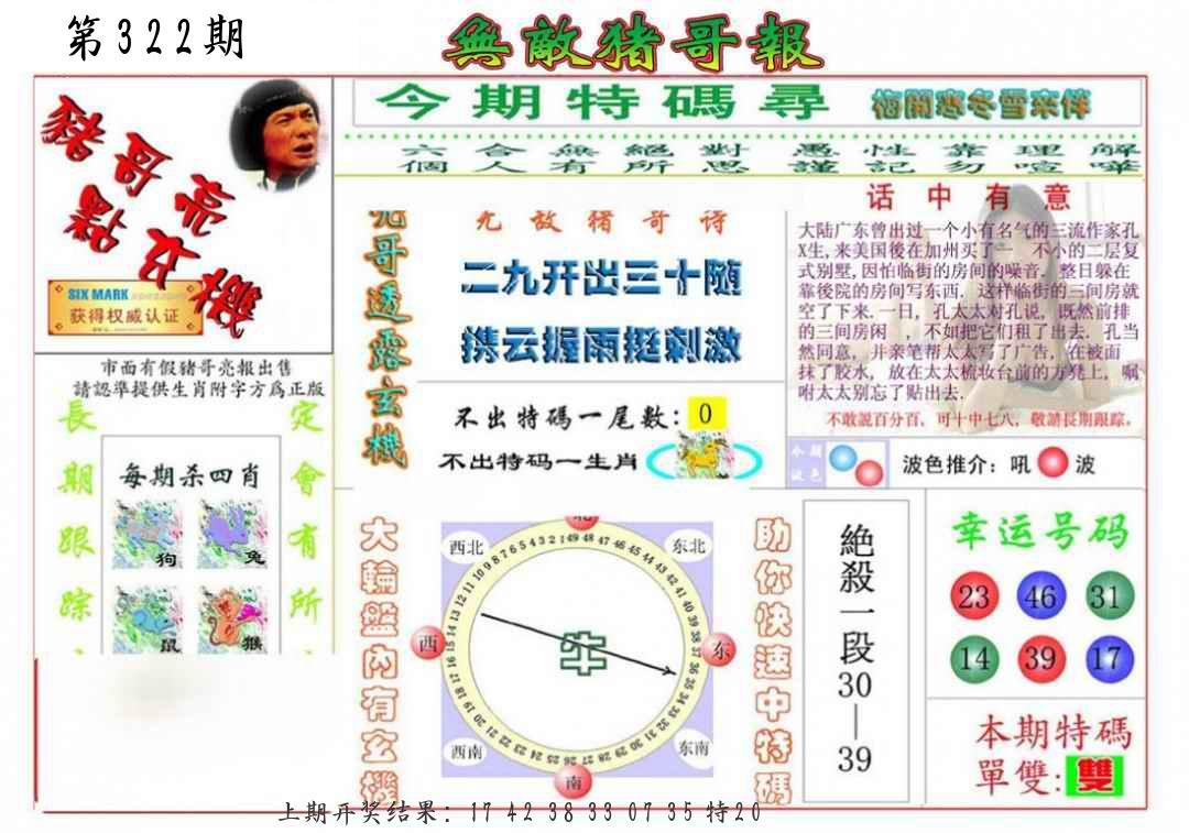 320期 家 【狗猪马】 野 【鼠龙兔】开 30鼠对 |