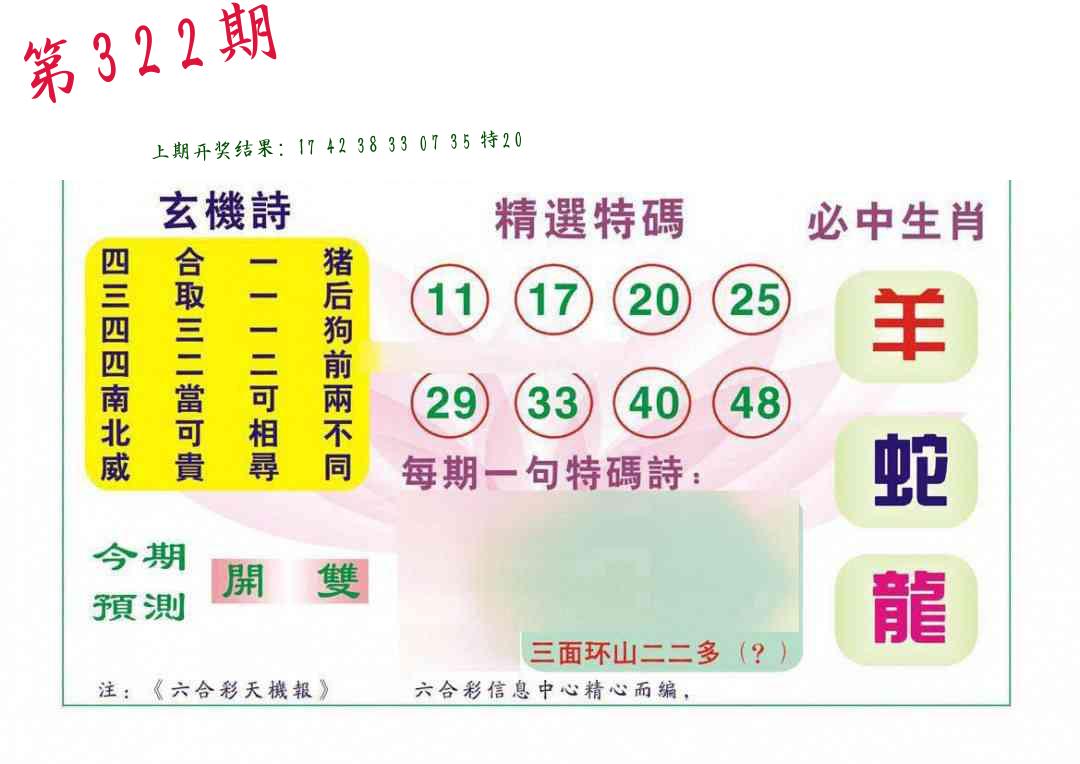 322期绝杀1.肖1.尾 【虎肖1尾】 开 ??????? |