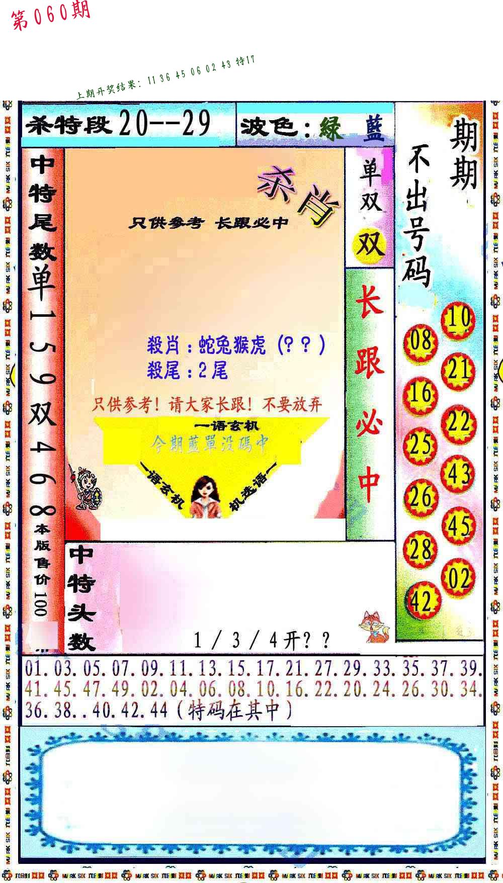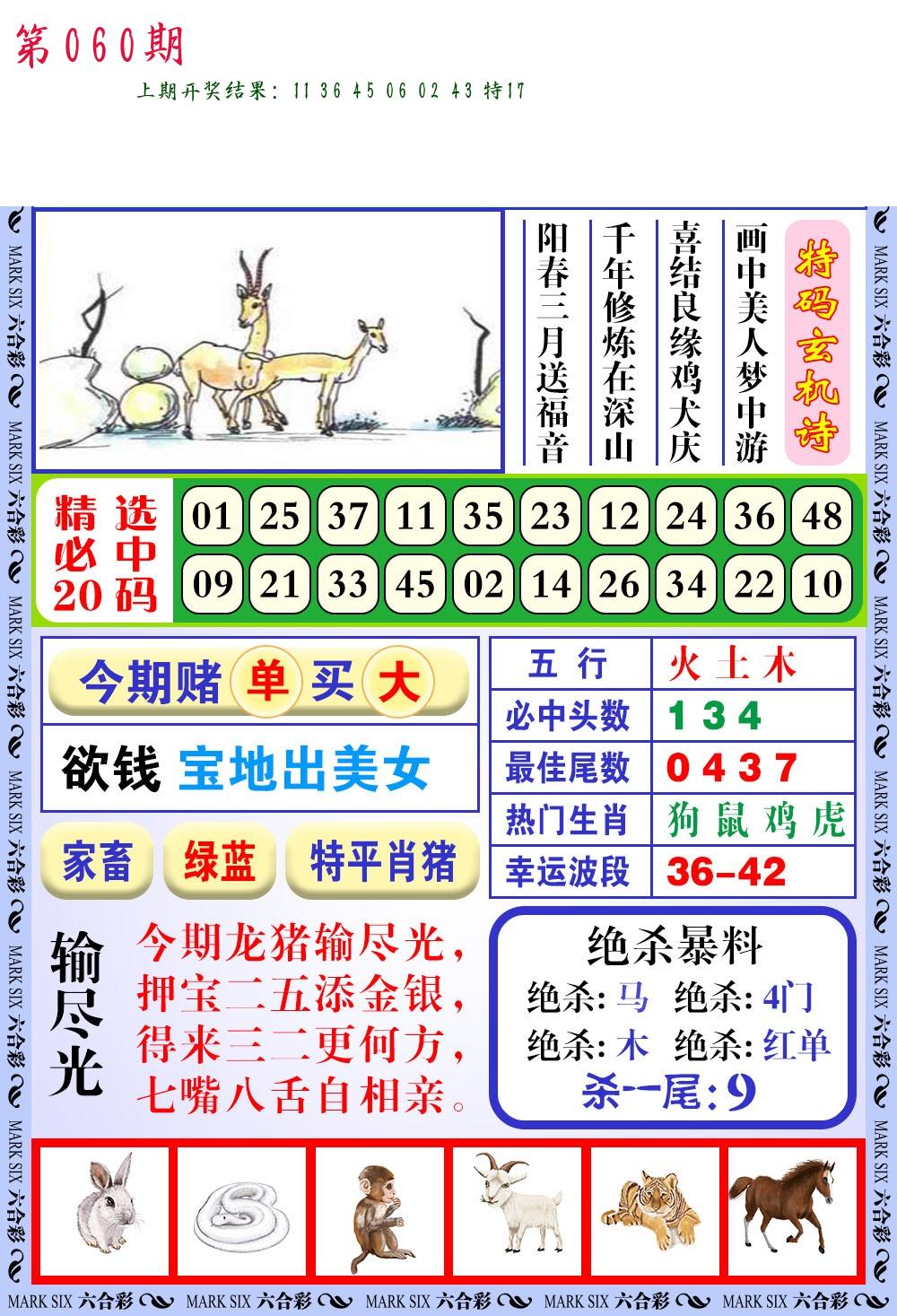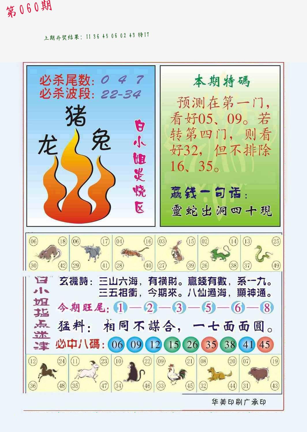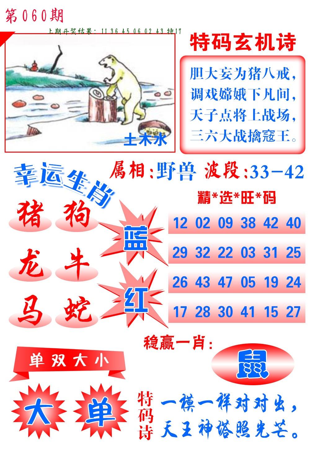 060期绝杀1.肖1.尾 【羊肖0尾】 开 ??????? |