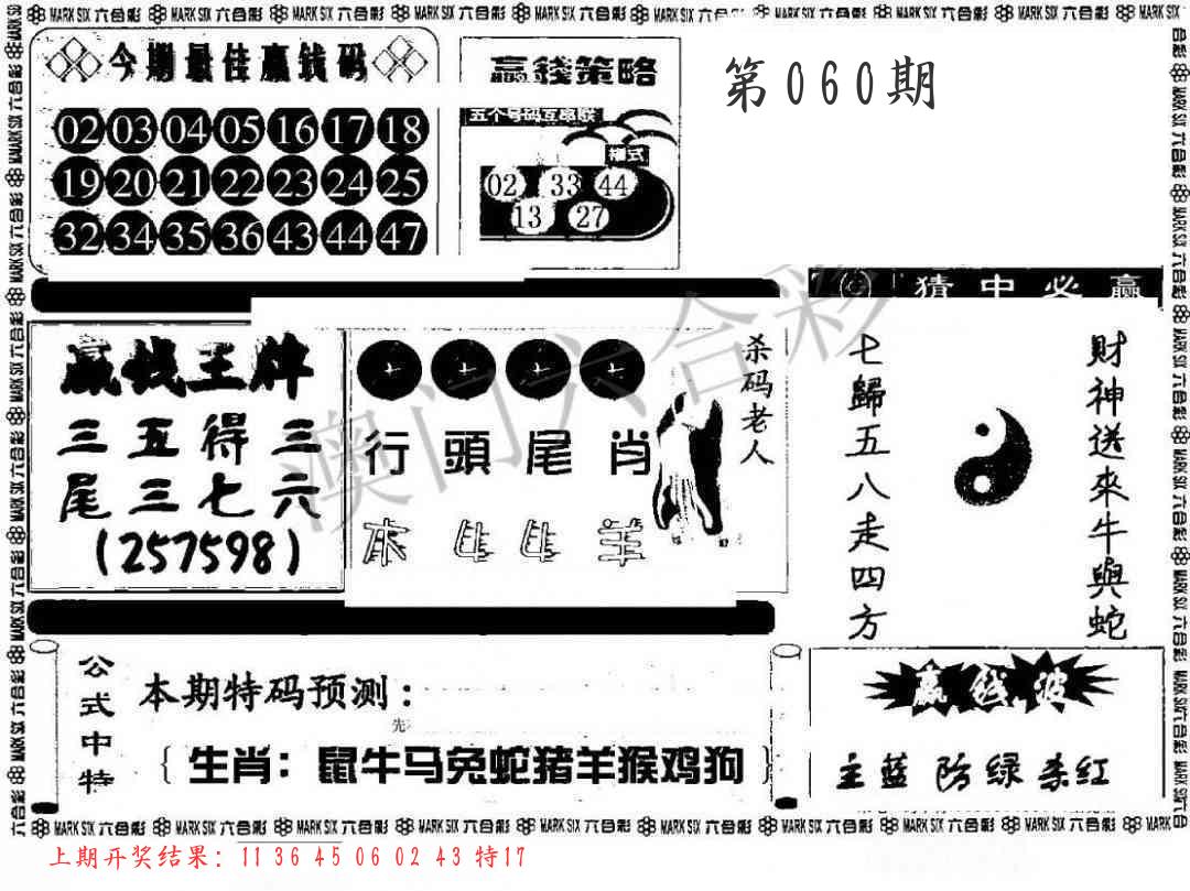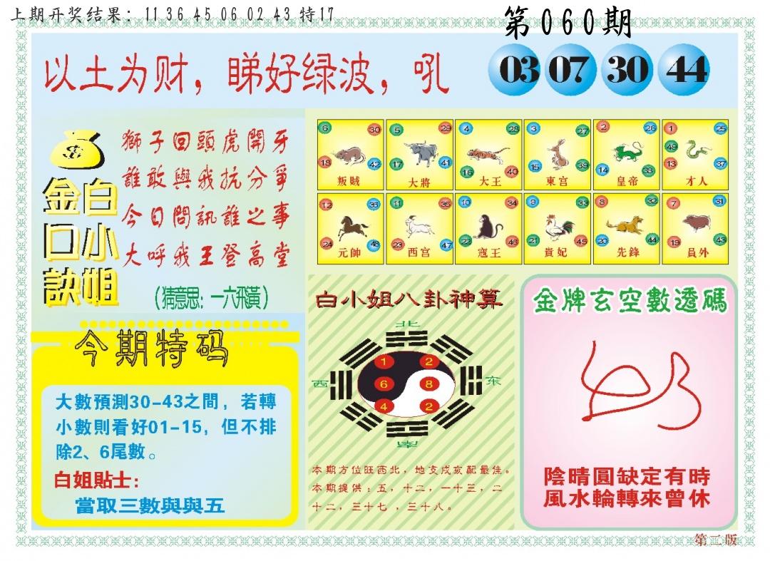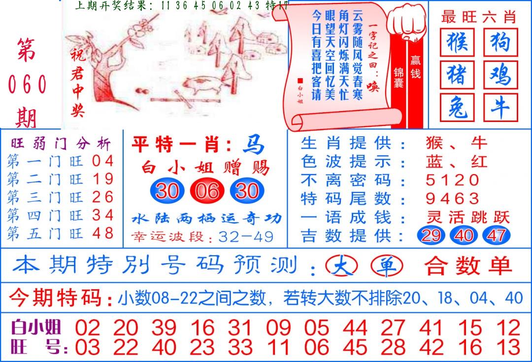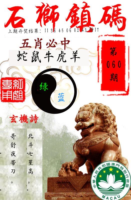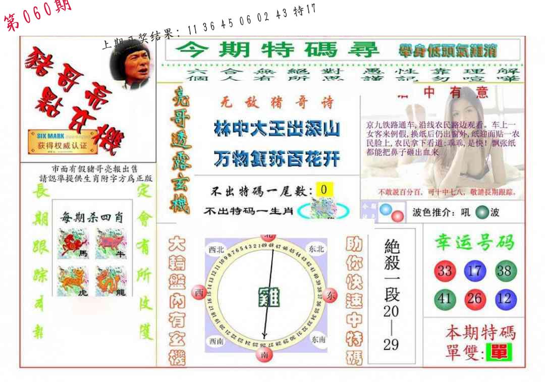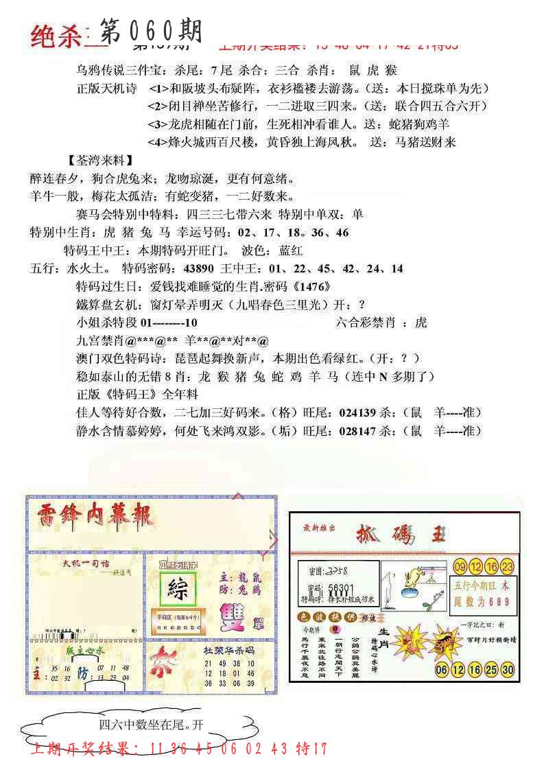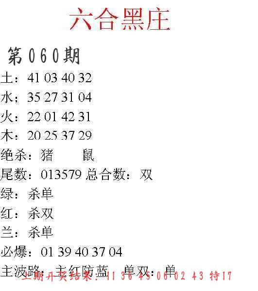 060期绝杀1.肖1.尾 【羊肖0尾】 开 ??????? |