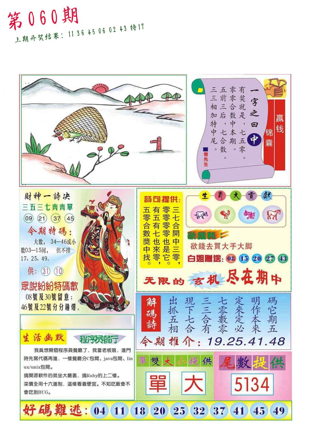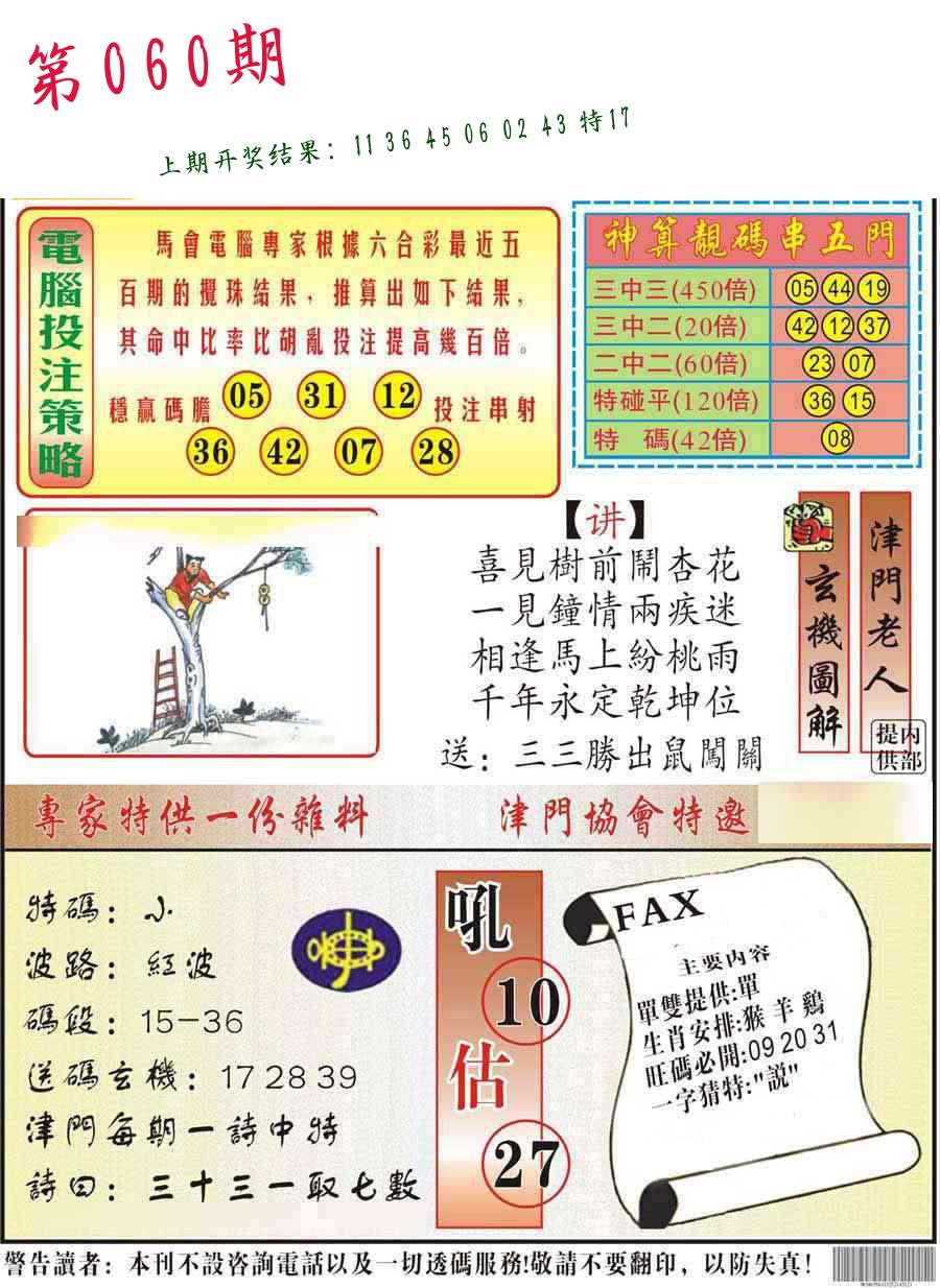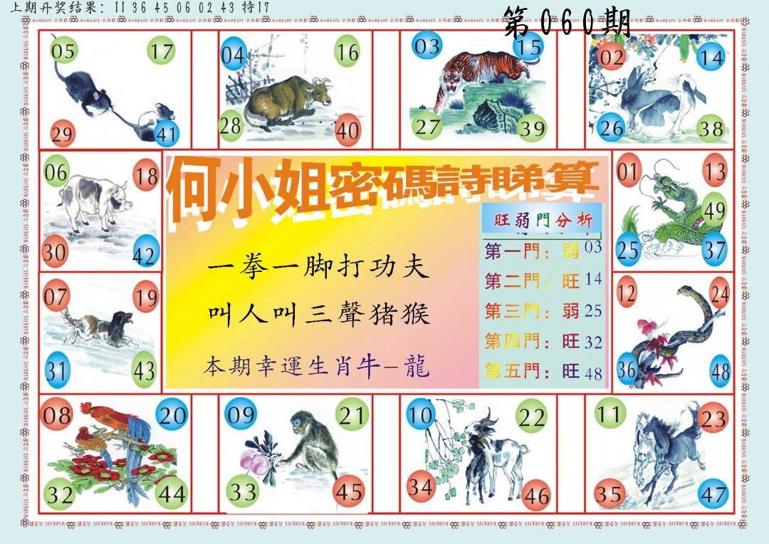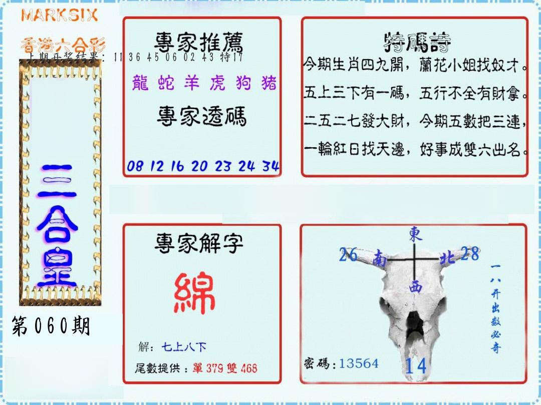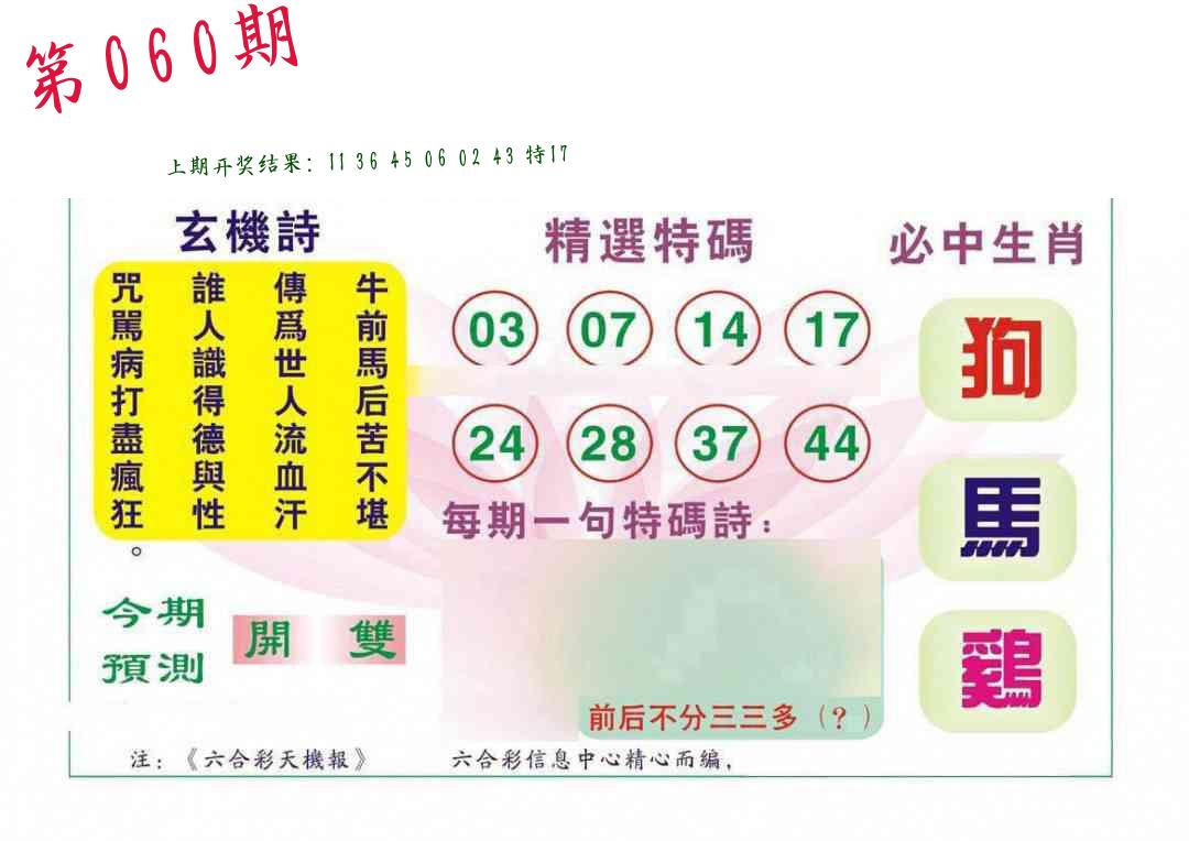060期绝杀1.肖1.尾 【羊肖0尾】 开 ??????? |