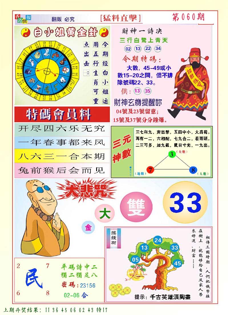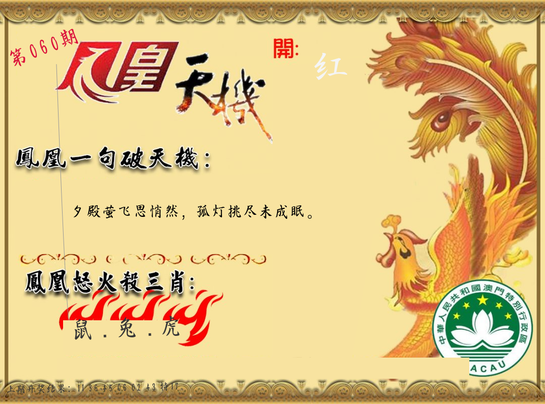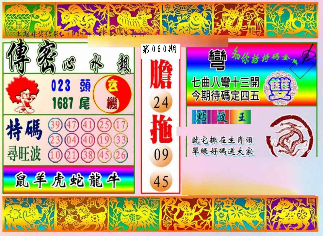 | 060期推荐五肖: 龙猴猪蛇鸡 ~~稳准狠 |