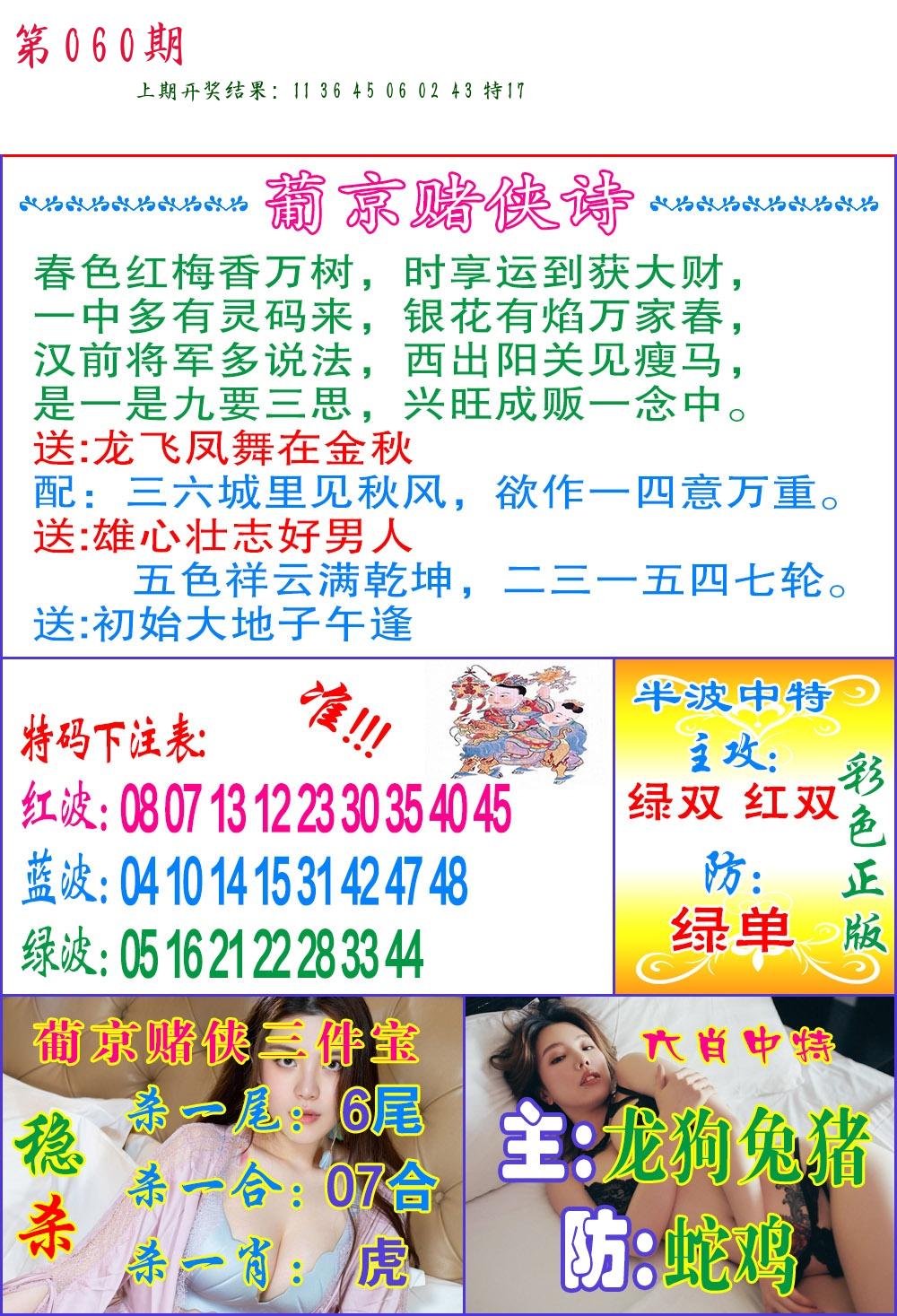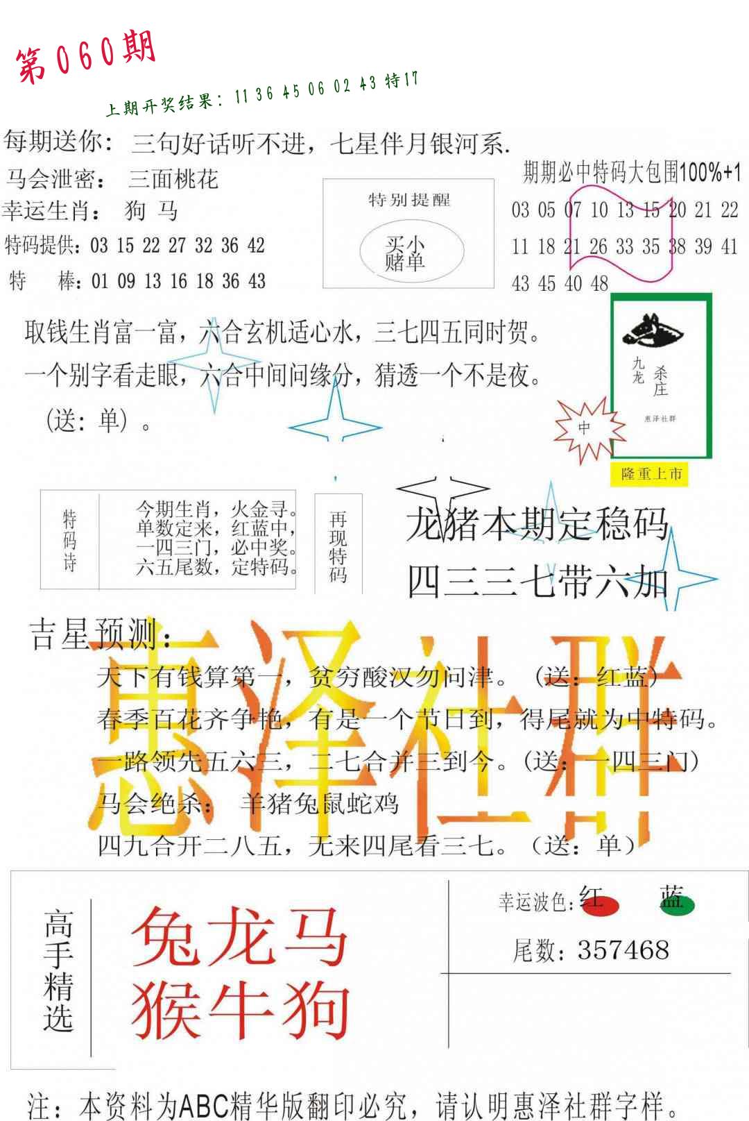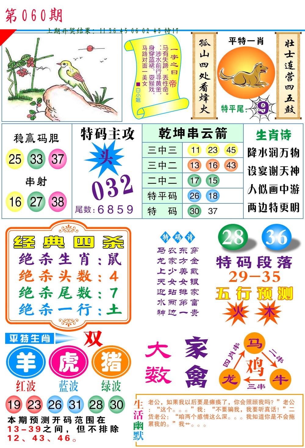 准确率高达90%,期期挑出12-18码 ____________★____________ 【九肖】 060期【鼠蛇龙羊虎猴狗鸡兔】开????? 059期【猪虎羊猴鼠龙马牛兔】开17虎对 058期【龙猪猴狗马兔虎鸡牛】开49马对 057期【猪龙鼠马虎牛狗羊鸡】开43鼠对 056期【羊兔猪马龙牛蛇鼠狗】开39龙对 055期【鸡虎狗猴兔牛龙马羊】开37马对 054期【兔虎蛇龙鼠猴牛鸡马】开19鼠对 053期【马龙兔鸡蛇鼠猪狗羊】开15龙对 ____________★____________ 【四头】 060期【0-2-3-4】开?????? 059期【0-3-1-2】开17虎对 058期【4-1-0-3】开49马对 057期【1-0-3-4】开43鼠对 056期【0-1-3-2】开39龙对 055期【0-1-2-4】开37马错 054期【1-3-0-4】开19鼠对 053期【4-1-2-3】开15龙对 ____________★____________ 【四行】 060期【木-水-土-金】开?????? 059期【水-土-金-木】开17虎对 058期【水-金-木-火】开49马对 057期【土-木-水-金】开43鼠对 056期【火-水-土-木】开39龙对 055期【木-火-土-金】开37马对 054期【土-火-木-水】开19鼠对 053期【金-水-土-木】开15龙对 ____________★____________ 【七尾】 060期【3-2-6-4-7-0-5】开????? 059期【0-8-4-9-1-3-7】开17虎对 058期【8-3-1-2-6-7-0】开49马错 057期【8-7-9-6-5-4-0】开43鼠错 056期【5-9-6-2-3-4-7】开39龙对 055期【4-7-6-9-8-3-5】开37马对 054期【3-2-0-1-5-8-6】开19鼠错 053期【4-9-7-6-0-3-2】开15龙错 ____________★____________ 【双波】 060期【红波+绿波】开????? 059期【红波+蓝波】开17虎错 058期【红波+绿波】开49马对 057期【红波+绿波】开43鼠对 056期【红波+绿波】开39龙对 055期【蓝波+红波】开37马对 054期【蓝波+绿波】开19鼠错 053期【绿波+红波】开15龙错 ____________★____________ |
