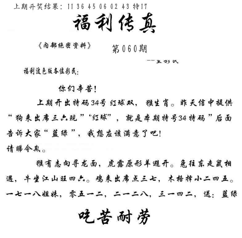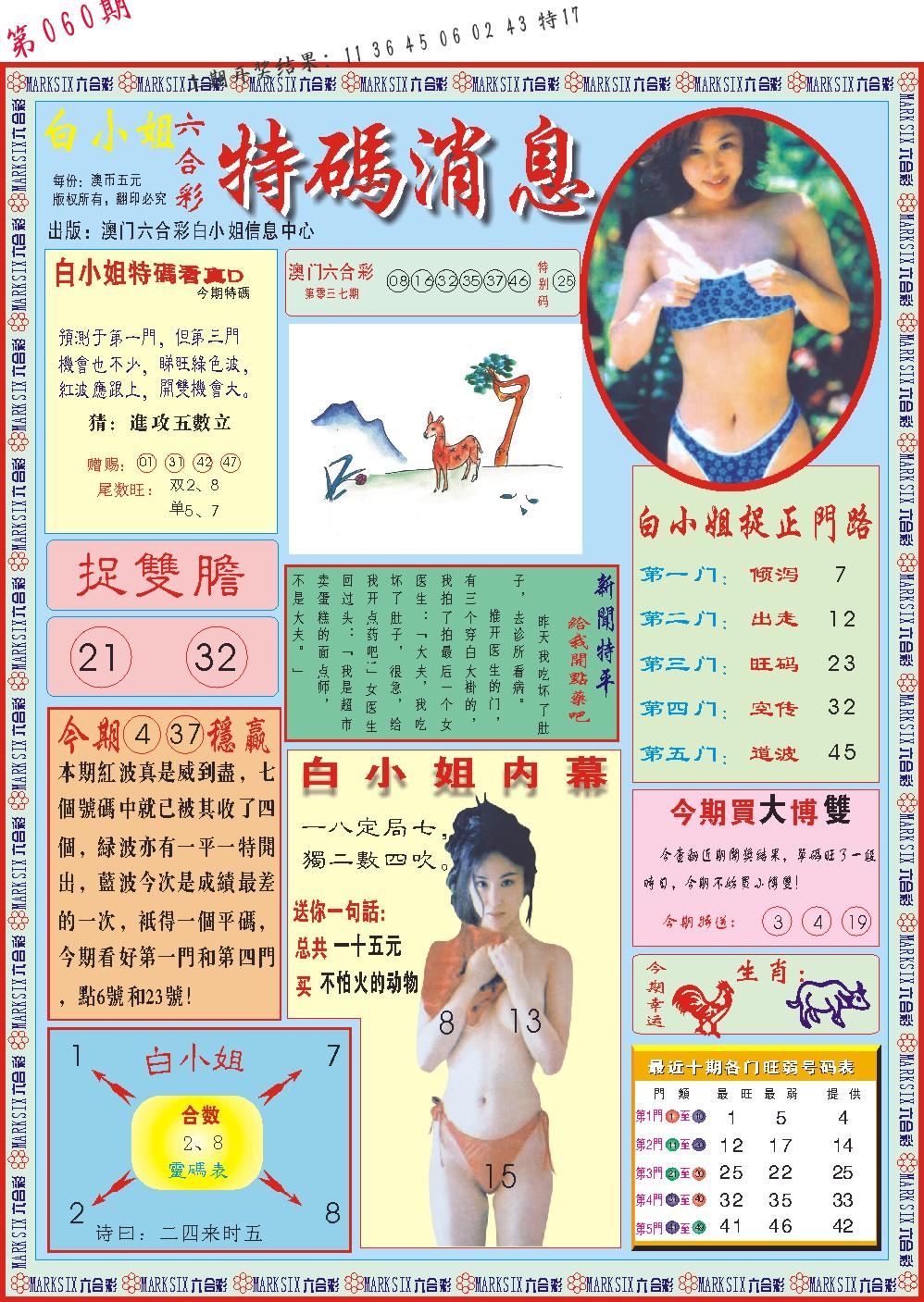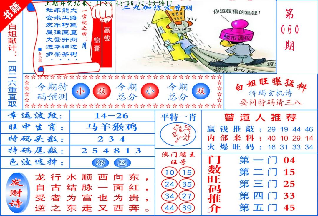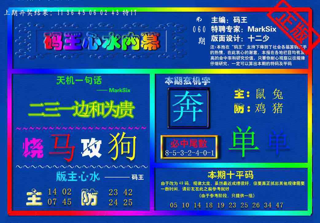 准确率高达90%,期期挑出12-18码 ____________★____________ 【九肖】 060期【鼠蛇龙羊虎猴狗鸡兔】开????? 059期【猪虎羊猴鼠龙马牛兔】开17虎对 058期【龙猪猴狗马兔虎鸡牛】开49马对 057期【猪龙鼠马虎牛狗羊鸡】开43鼠对 056期【羊兔猪马龙牛蛇鼠狗】开39龙对 055期【鸡虎狗猴兔牛龙马羊】开37马对 054期【兔虎蛇龙鼠猴牛鸡马】开19鼠对 053期【马龙兔鸡蛇鼠猪狗羊】开15龙对 ____________★____________ 【四头】 060期【0-2-3-4】开?????? 059期【0-3-1-2】开17虎对 058期【4-1-0-3】开49马对 057期【1-0-3-4】开43鼠对 056期【0-1-3-2】开39龙对 055期【0-1-2-4】开37马错 054期【1-3-0-4】开19鼠对 053期【4-1-2-3】开15龙对 ____________★____________ 【四行】 060期【木-水-土-金】开?????? 059期【水-土-金-木】开17虎对 058期【水-金-木-火】开49马对 057期【土-木-水-金】开43鼠对 056期【火-水-土-木】开39龙对 055期【木-火-土-金】开37马对 054期【土-火-木-水】开19鼠对 053期【金-水-土-木】开15龙对 ____________★____________ 【七尾】 060期【3-2-6-4-7-0-5】开????? 059期【0-8-4-9-1-3-7】开17虎对 058期【8-3-1-2-6-7-0】开49马错 057期【8-7-9-6-5-4-0】开43鼠错 056期【5-9-6-2-3-4-7】开39龙对 055期【4-7-6-9-8-3-5】开37马对 054期【3-2-0-1-5-8-6】开19鼠错 053期【4-9-7-6-0-3-2】开15龙错 ____________★____________ 【双波】 060期【红波+绿波】开????? 059期【红波+蓝波】开17虎错 058期【红波+绿波】开49马对 057期【红波+绿波】开43鼠对 056期【红波+绿波】开39龙对 055期【蓝波+红波】开37马对 054期【蓝波+绿波】开19鼠错 053期【绿波+红波】开15龙错 ____________★____________ |