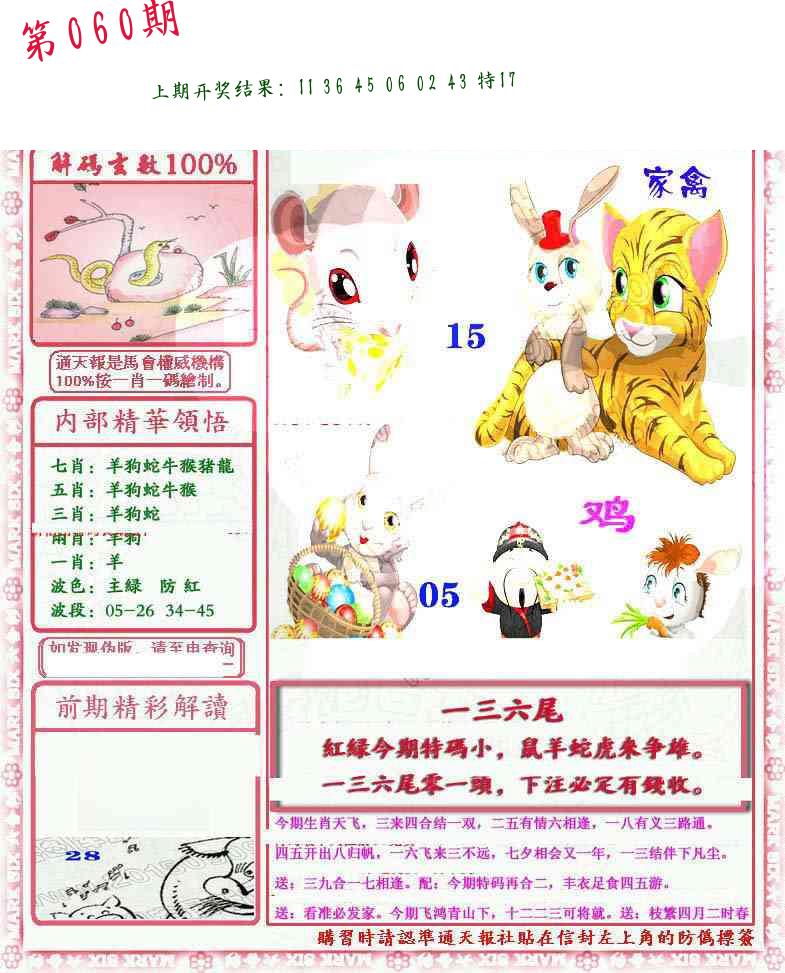 060期 家 【鸡牛狗】 野 【兔鼠龙】开 ??????? |