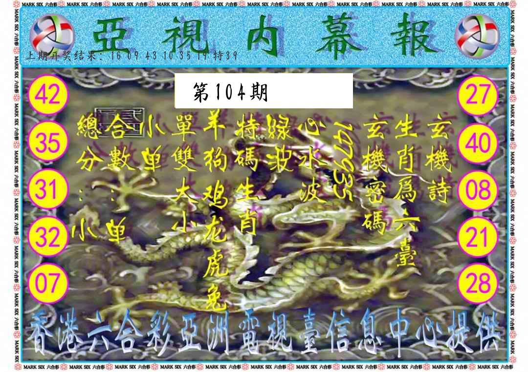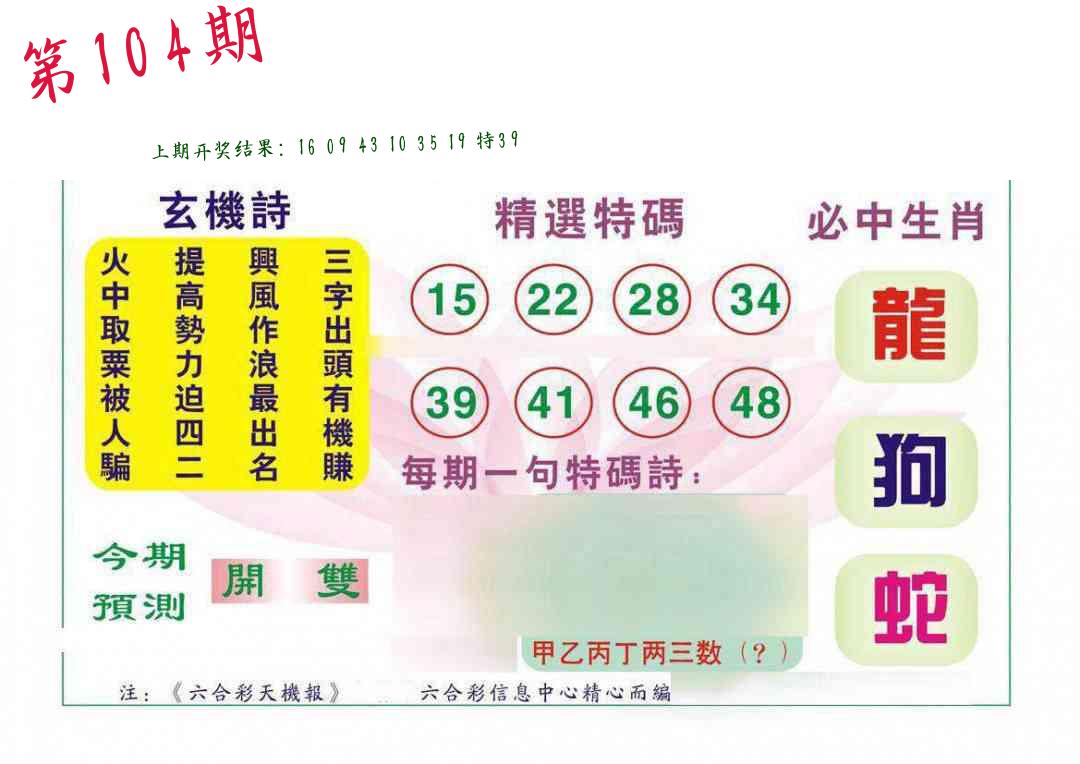 第103期:四肖中特开(39龙错)中 |