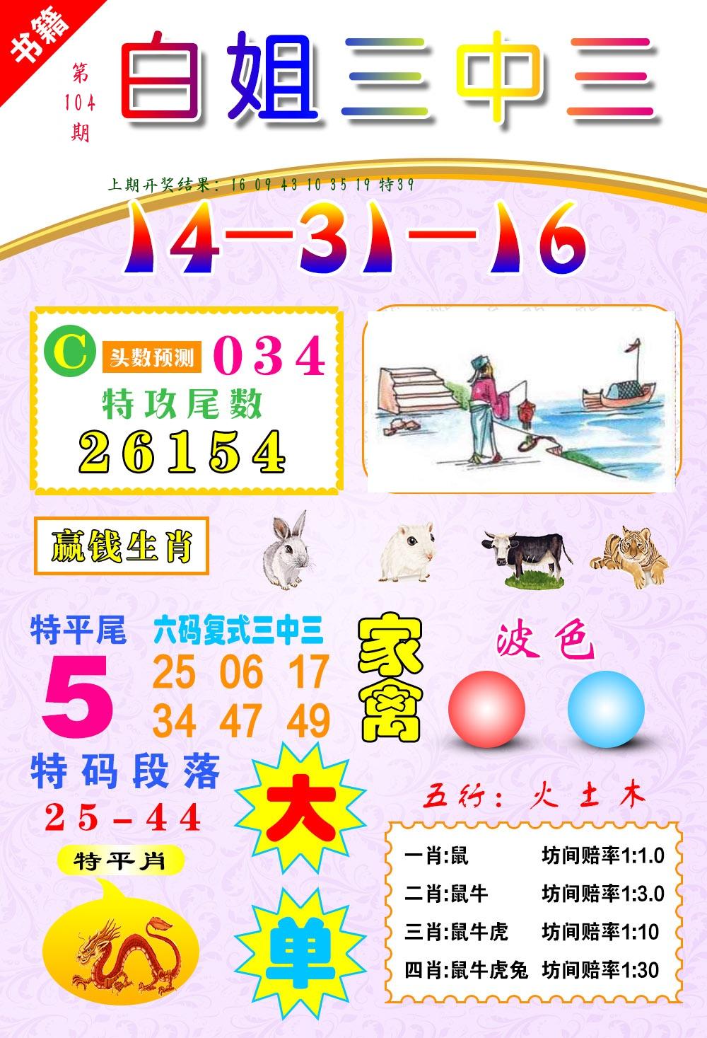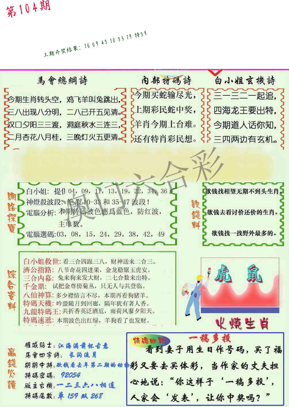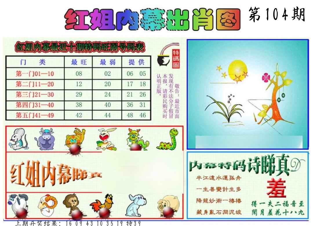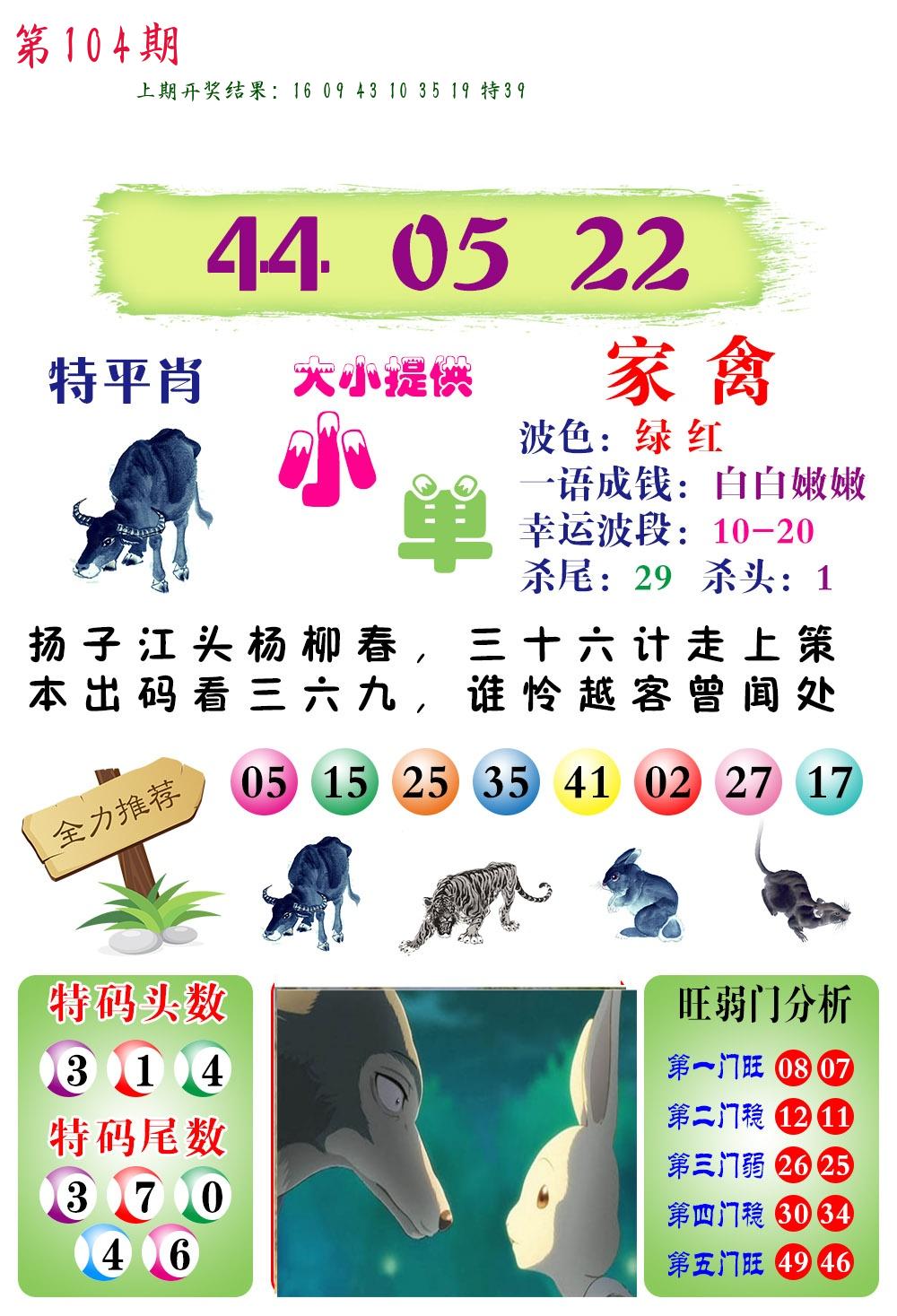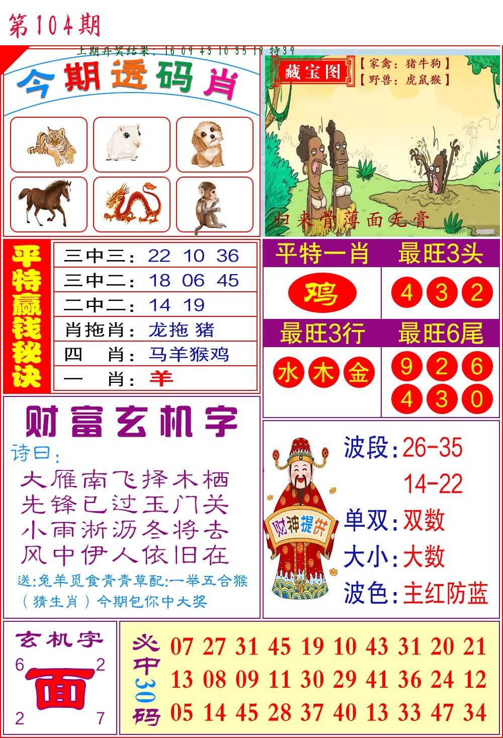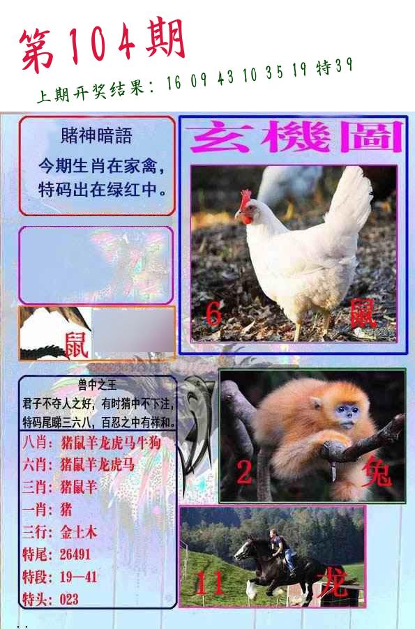 104期 家 【猪鸡狗】 野 【兔虎猴】开 ??????? |