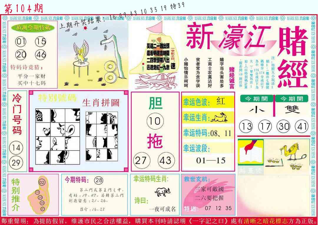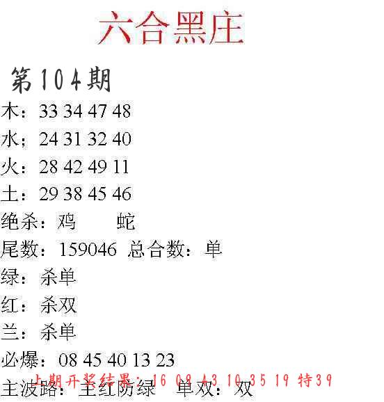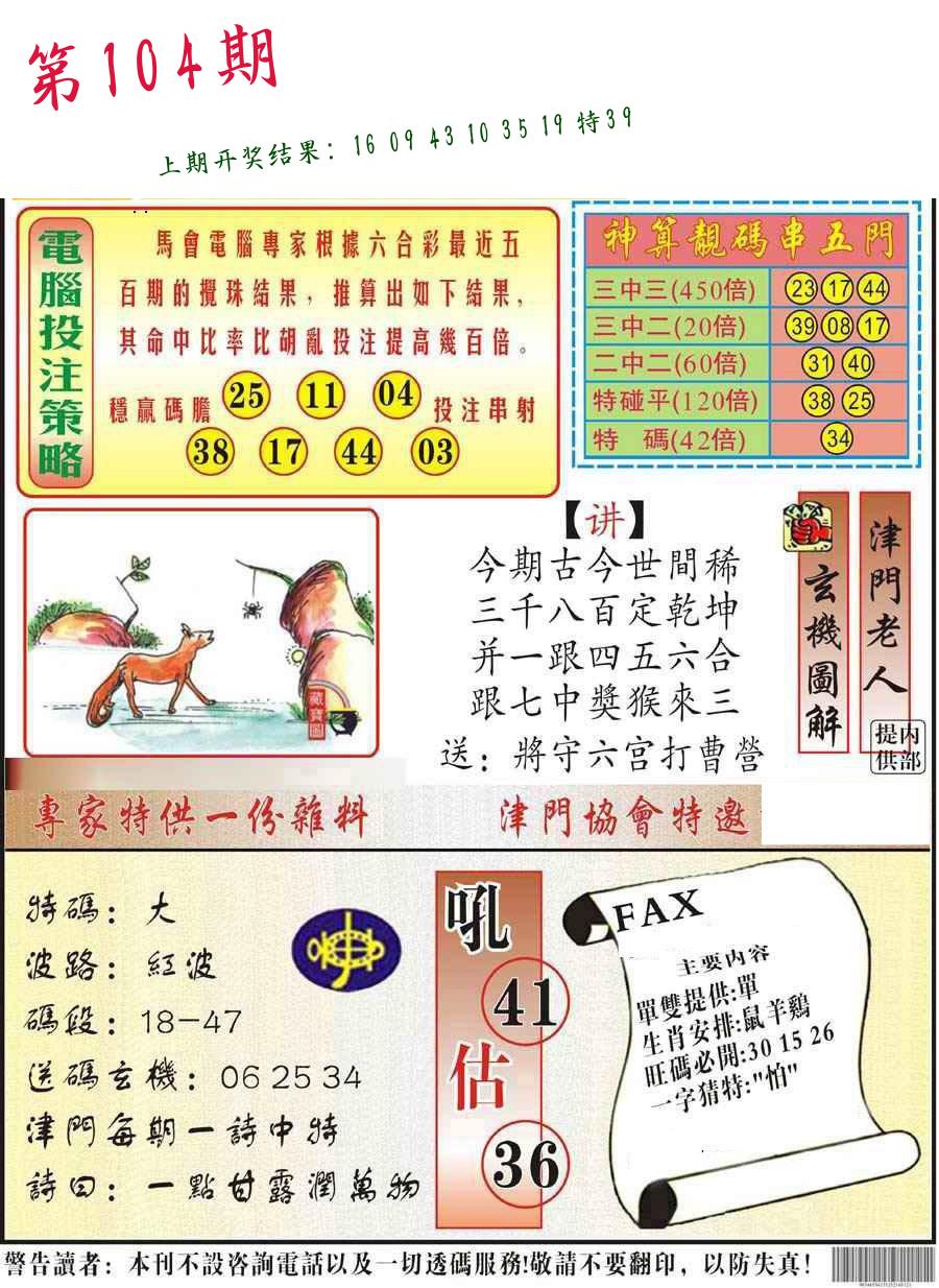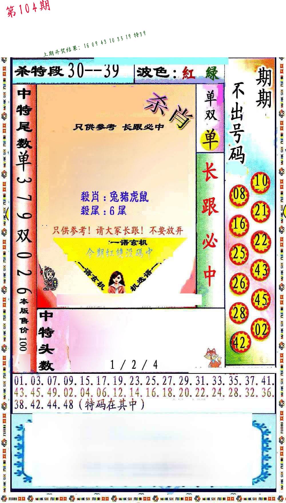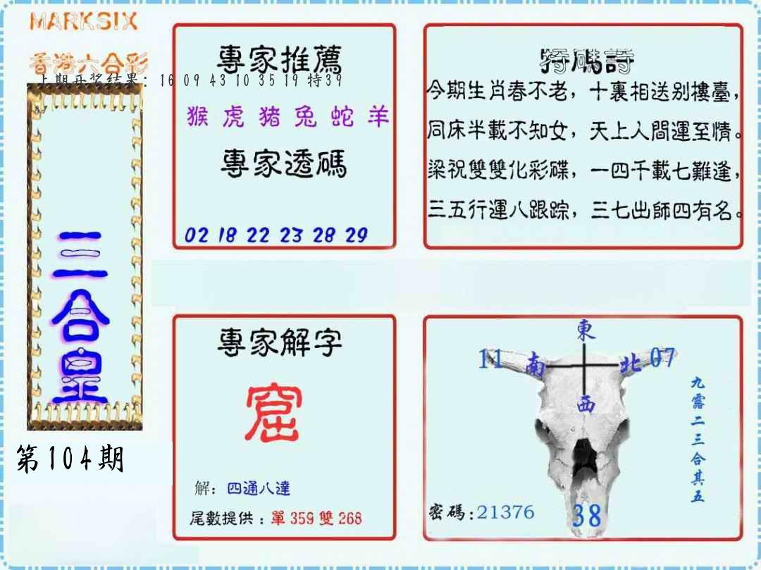 104期必中九肖 (??????)