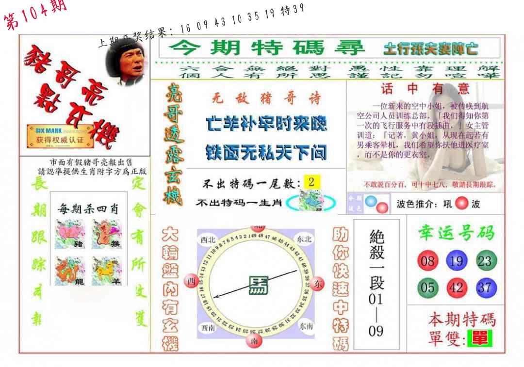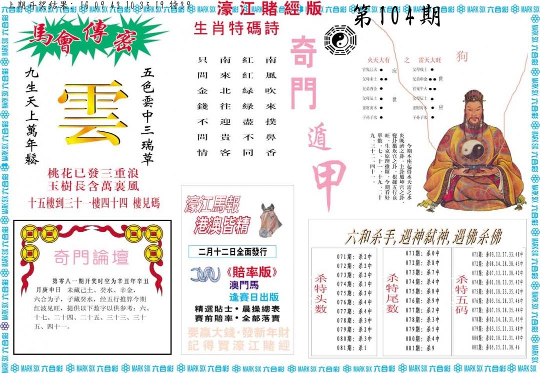 104期绝杀1.肖1.尾 【马肖6尾】 开 ??????? |